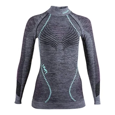 UYN U100055 AMBITYON UW LG_SL MELANGE TURTLE T shirt Women's Black Melange/Pink/Aqua XS