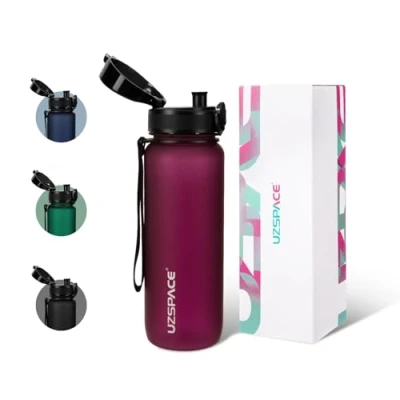 Safe & Reliable Material: Made of quality food-grade and environment-friendly plastic - Tritan, UZSPACE sports water bottle is 100% BPA-free. Tritan is non-toxic and odorless, which is great for your family. In addition tritan water bottle is not only highly impact-resistant and drop-proof, but also highly transparent, allowing you to easily track your daily water intake with the thoughtfully designed capacity scale Unique Design: First with one-hand opening mechanism and a flip-top lid, you can just press the button of UZSPACE clear water bottle when you want to rehydrate. No more struggling with twist caps! Second the drinking spout contours to your lips for drip-free drinking, a vent on the lid ensures a consistent flow. Finally its removable wrist strap makes this cycling water bottle easy to carry or hang Triple Leakproof System: With a safety lock, a silicone seal and silicone stoppers, our gym water bottle is 100% leakproof. Whether in rapid motion or lying in your backpack, this water bottle won't open accidentally or leak Ideal Capacity: This 800ml waterbottles for adults is practical. Its wide mouth makes it easy to add ice, juice and all types of beverages, and it’s even suitable for carbonated drinks. Also with the removable filter strainer, you can add the fruit of choice in this daily water intake bottle to turn your water into a healthy concoction to start your day Elegant & Functional: This water bottle features a modern design. The matte smooth finish and exquisite gift packaging make it the great gift for friends, family and lover. UZSPACE personalised water bottle is the great companion for work, fitness, sports or travel use. And it fits most backpack/bike/car bottle holders (78mm diameter)