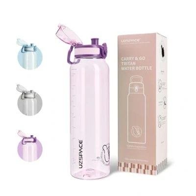 UZSPACE Water Bottle 1l with Handle BPA Free Drinking Bottles for Adults Clear Capacity Scale Leakproof Gym Ideal Sports or Fitness & Outdoors Purple