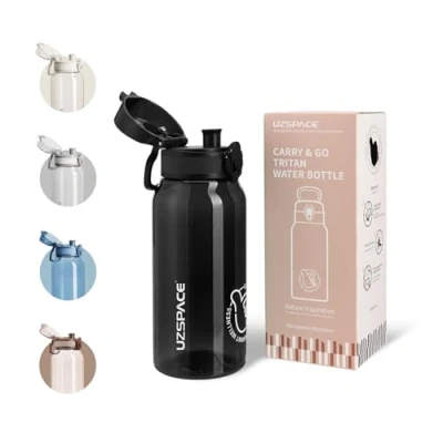 Healthy & Durable: Made of quality food-grade and environment-friendly plastic - Tritan, UZSPACE sports water bottle is safe and non-toxic. Tritan is 100% BPA-free and odorless, which is great for kids and adults. In addition tritan water bottle is not only highly impact-resistant and drop-proof, but also highly transparent, allowing you to easily track your daily water intake with the thoughtfully designed capacity scale Thoughtful Design: First with one-hand opening mechanism and a flip-top lid, you can just press the button of UZSPACE clear water bottle when you want to rehydrate. No more struggling with twist caps! Second the drinking spout contours to your lips for drip-free drinking, a vent on the lid ensures a consistent flow. Finally its ergonomic handle makes this kids water bottle easy to carry or hang Triple Leakproof System: With a safety lock, a silicone seal and silicone stoppers, our gym water bottle is 100% leakproof. Whether in rapid motion or lying in your backpack, this water bottle won't open accidentally or leak, keeping your bag’s contents completely dry. Also we provide a set of extra sealing rings for you to replace to extend the service life of this daily water intake bottle Ideal Capacity & Easy to Clean: This 600ml childrens water bottle is practical. Its wide mouth makes it easy to add ice, juice and all types of beverages, and it’s even suitable for carbonated drinks. Also it's designed for easy hand washing and is also dishwasher safe Ideal Gift Choice & Multi-Use: This water bottle features a modern design and comes in elegant gift packaging, making it the great gift for friends, children, family and lover. And truly a reusable drinking bottle for the whole family. UZSPACE personalised water bottle is the great companion for school, work, sports or travel use. And it fits most backpack/bike/car bottle holders (75mm diameter)