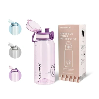 Healthy & Durable: Made of quality food-grade and environment-friendly plastic - Tritan, UZSPACE sports water bottle is safe and non-toxic. Tritan is 100% BPA-free and odorless, which is great for kids and adults. In addition tritan water bottle is not only highly impact-resistant and drop-proof, but also highly transparent, allowing you to easily track your daily water intake with the thoughtfully designed capacity scale Thoughtful Design: First with one-hand opening mechanism and a flip-top lid, you can just press the button of UZSPACE clear water bottle when you want to rehydrate. No more struggling with twist caps! Second the drinking spout contours to your lips for drip-free drinking, a vent on the lid ensures a consistent flow. Finally its ergonomic handle makes this kids water bottle easy to carry or hang Triple Leakproof System: With a safety lock, a silicone seal and silicone stoppers, our gym water bottle is 100% leakproof. Whether in rapid motion or lying in your backpack, this water bottle won't open accidentally or leak, keeping your bag’s contents completely dry. Also we provide a set of extra sealing rings for you to replace to extend the service life of this daily water intake bottle Ideal Capacity & Easy to Clean: This 600ml childrens water bottle is practical. Its wide mouth makes it easy to add ice, juice and all types of beverages, and it’s even suitable for carbonated drinks. Also it's designed for easy hand washing and is also dishwasher safe Ideal Gift Choice & Multi-Use: This water bottle features a modern design and comes in elegant gift packaging, making it the great gift for friends, children, family and lover. And truly a reusable drinking bottle for the whole family. UZSPACE personalised water bottle is the great companion for school, work, sports or travel use. And it fits most backpack/bike/car bottle holders (75mm diameter)