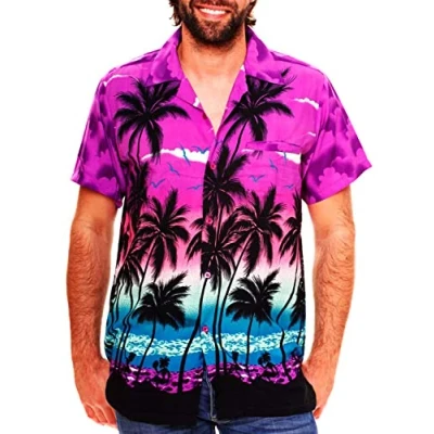 V.H.O. Funky Hawaiian Shirt, Shortsleeve, Beach, Eclectic Purple, L