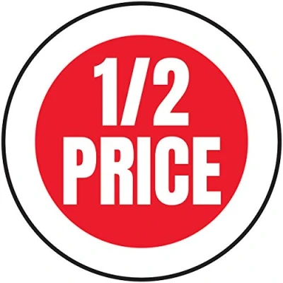V Safety 1/2 Price Sticker 50mm Diameter (Roll of 250)
