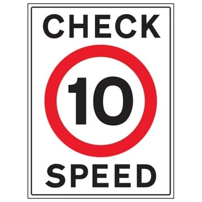 V Safety 10 Mph Check Speed w/channel 3 mm AlumComp RA1 Anti Graffiti 450 x 600 Sign