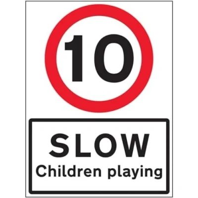V Safety 10 MPH Children Playing 600x800mm Class RA1 Reflective 3mm Aluminium Composite With Fixing Channel Sign