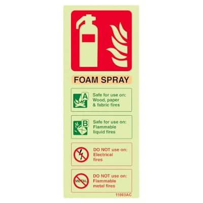 V Safety 11003AC G Glow In The Dark Foam Spray Id Not Electrical Safe Fire Extinguisher Sign 75mm x 200mm Rigid Plastic, Beige/Black/Green/Red