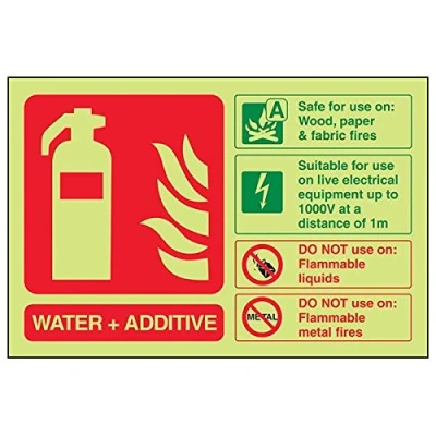 Helps fulfil obligations to convey essential information relating to fire fighting equipment as per Health and Safety (Safety Signs & Signals) Regulations 1996 Conforms to EN ISO 7010:2012 Landscape Orientation. Sign reads "Safe On Wood, Paper & Fabric Fires. Suitable For Use On Live Electrical Equipment Up To 1000v At A Distance Of 1m. DO NOT Use On Flammable Liquids/Metal Fires" Highly durable Glow In The Dark 1mm plastic material and screen printed message will stand the test of time Sign measures 150 x 100mm.