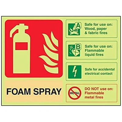 Helps fulfil obligations to convey essential information relating to fire fighting equipment as per Health and Safety (Safety Signs & Signals) Regulations 1996 Conforms to EN ISO 7010:2012 Landscape Orientation. Sign reads "Safe For Use On Wood, Paper & Fabric Fires. Safe For Use On Flammable Liquid Fires. Safe For Accidental Electrical Contact. DO NOT Use On Flammable Metal Fires" Highly durable Glow In The Dark 1mm plastic material and screen printed message will stand the test of time Sign measures 200 x 150mm