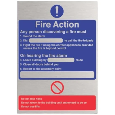 V Safety 12001AN ACBRSH General Fire Action Dial Sign 150mm x 200mm 3mm Brushed Alu Comp