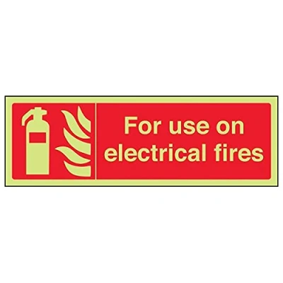 Helps fulfil obligations to convey essential information relating to fire fighting equipment as per Health and Safety (Safety Signs & Signals) Regulations 1996 Conforms to EN ISO 7010:2012 Landscape Orientation. Sign reads "For Use On Electrical Fires" Highly durable Glow In The Dark 1mm plastic material and screen printed message will stand the test of time Sign measures 300 x 100mm.
