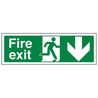 V Safety 14002AX S'Fire Exit Arrow Down' Sign, Landscape, 300 mm x 100 (Pack of 3)