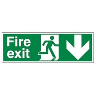 V Safety 14002BJ R'Fire Exit Arrow Down' Sign, Landscape, 450 mm x 150 (Pack of 3)