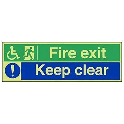 Helps to fulfil obligations to identify escape routes in a fire emergency for all members of staff and visitors as per Health and Safety (Safety Signs & Signals) Regulations 1996 Conforms to EN ISO 7010:2012 by featuring a green background with a white pictogram or text positioned centrally Landscape Orientation. Sign reads "Fire Exit. Keep Clear" Highly durable Glow In The Dark 1mm plastic material and screen printed message will stand the test of time Sign measures 600 x 200mm.