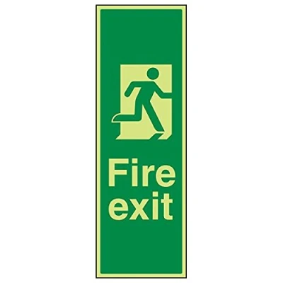 Helps to fulfil obligations to identify escape routes in a fire emergency for all members of staff and visitors as per Health and Safety (Safety Signs & Signals) Regulations 1996 Conforms to EN ISO 7010:2012 by featuring a green background with a white pictogram or text positioned centrally Portrait Orientation. Sign reads "Fire Exit" Highly durable Glow In The Dark 1mm plastic material and screen printed message will stand the test of time Sign measures 200 x 600mm.