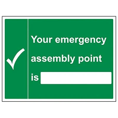 Helps to fulfil legal obligations to inform of the direction in which safety can be reached as per Health and Safety (Safety Signs & Signals) Regulations 1996 Conforms to EN ISO 7010:2012 by featuring a green background with a white pictogram or text positioned centrally Landscape Orientation. Sign reads "Your Emergency Assembly Point Is:" Highly durable Self Adhesive Vinyl material and screen printed message will stand the test of time Sign measures 400 x 300mm. Self Adhesive material will adhere securely to most surfaces