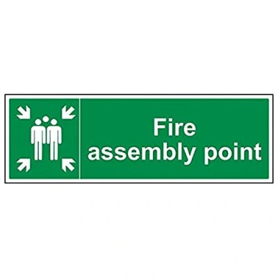 Helps to fulfil legal obligations to inform of the direction in which safety can be reached as per Health and Safety (Safety Signs & Signals) Regulations 1996 Conforms to EN ISO 7010:2012 by featuring a green background with a white pictogram or text positioned centrally Landscape Orientation. Sign reads "Fire Assembly Point" Highly durable Self Adhesive Vinyl material and screen printed message will stand the test of time Sign measures 600 x 200mm. Self Adhesive material will adhere securely to most surfaces