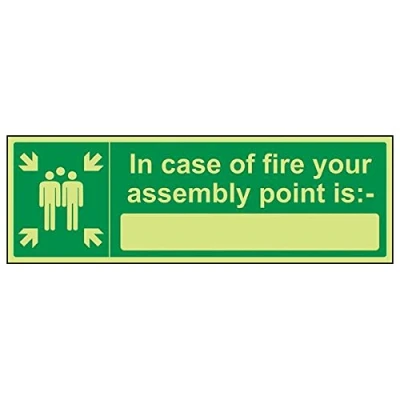 Helps to fulfil legal obligations to inform of the direction in which safety can be reached as per Health and Safety (Safety Signs & Signals) Regulations 1996 Conforms to EN ISO 7010:2012 by featuring a green background with a white pictogram or text positioned centrally Landscape Orientation. Sign reads "In Case Of Fire Your Assembly Point Is:" Highly durable Glow In The Dark 1mm plastic material and screen printed message will stand the test of time Sign measures 450 x 150mm.