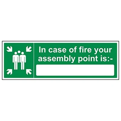 Helps to fulfil legal obligations to inform of the direction in which safety can be reached as per Health and Safety (Safety Signs & Signals) Regulations 1996 Conforms to EN ISO 7010:2012 by featuring a green background with a white pictogram or text positioned centrally Landscape Orientation. Sign reads "In Case Of Fire Your Assembly Point Is:" Highly durable 1mm plastic material and screen printed message will stand the test of time Sign measures 600 x 200mm.