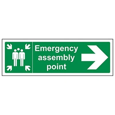 Helps to fulfil legal obligations to inform of the direction in which safety can be reached as per Health and Safety (Safety Signs & Signals) Regulations 1996 Conforms to EN ISO 7010:2012 by featuring a green background with a white pictogram or text positioned centrally Landscape Orientation. Sign reads "Emergency Assembly Point" Highly durable Self Adhesive Vinyl material and screen printed message will stand the test of time Sign measures 300 x 100mm. Self Adhesive material will adhere securely to most surfaces