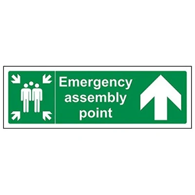 Helps to fulfil legal obligations to inform of the direction in which safety can be reached as per Health and Safety (Safety Signs & Signals) Regulations 1996 Conforms to EN ISO 7010:2012 by featuring a green background with a white pictogram or text positioned centrally Landscape Orientation. Sign reads "Emergency Assembly Point" Highly durable Self Adhesive Vinyl material and screen printed message will stand the test of time Sign measures 300 x 100mm. Self Adhesive material will adhere securely to most surfaces