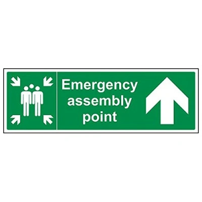 Helps to fulfil legal obligations to inform of the direction in which safety can be reached as per Health and Safety (Safety Signs & Signals) Regulations 1996 Conforms to EN ISO 7010:2012 by featuring a green background with a white pictogram or text positioned centrally Landscape Orientation. Sign reads "Emergency Assembly Point" Highly durable Self Adhesive Vinyl material and screen printed message will stand the test of time Sign measures 450 x 150mm. Self Adhesive material will adhere securely to most surfaces