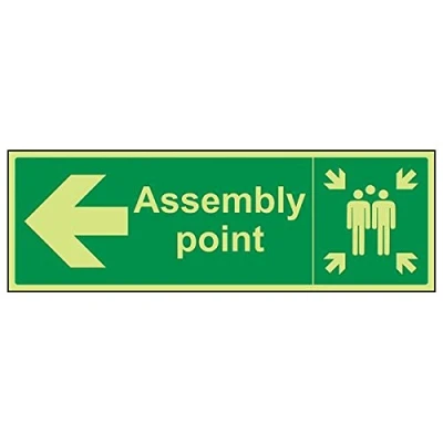 Helps to fulfil legal obligations to inform of the direction in which safety can be reached as per Health and Safety (Safety Signs & Signals) Regulations 1996 Conforms to EN ISO 7010:2012 by featuring a green background with a white pictogram or text positioned centrally Landscape Orientation. Sign reads "Assembly Point" Highly durable Glow In The Dark 1mm plastic material and screen printed message will stand the test of time Sign measures 450 x 150mm.