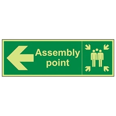 Helps to fulfil legal obligations to inform of the direction in which safety can be reached as per Health and Safety (Safety Signs & Signals) Regulations 1996 Conforms to EN ISO 7010:2012 by featuring a green background with a white pictogram or text positioned centrally Landscape Orientation. Sign reads "Assembly Point" Highly durable Glow In The Dark 1mm plastic material and screen printed message will stand the test of time Sign measures 600 x 200mm.