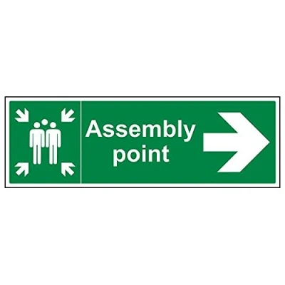 Helps to fulfil legal obligations to inform of the direction in which safety can be reached as per Health and Safety (Safety Signs & Signals) Regulations 1996 Conforms to EN ISO 7010:2012 by featuring a green background with a white pictogram or text positioned centrally Landscape Orientation. Sign reads "Assembly Point" Highly durable Self Adhesive Vinyl material and screen printed message will stand the test of time Sign measures 600 x 200mm. Self Adhesive material will adhere securely to most surfaces
