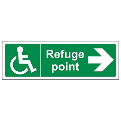 Helps to fulfil legal obligations to inform of the direction in which safety can be reached as per Health and Safety (Safety Signs & Signals) Regulations 1996 Conforms to EN ISO 7010:2012 by featuring a green background with a white pictogram or text positioned centrally Landscape Orientation. Sign reads "Refuge Point" Highly durable Self Adhesive Vinyl material and screen printed message will stand the test of time Sign measures 300 x 100mm. Self Adhesive material will adhere securely to most surfaces
