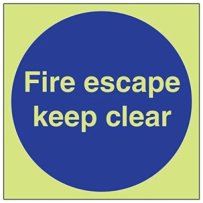 Helps to fulfil obligations to show vital escape route information about fire doors for all employees and visitors as per Health and Safety (Safety Signs & Signals) Regulations 1996 Conforms to EN ISO 7010:2012 Square Orientation. Sign reads "Fire Escape Keep Clear" Highly durable Glow In The Dark 1mm plastic material and screen printed message will stand the test of time Sign measures 150 x 150mm.