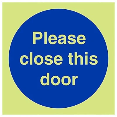 Helps to fulfil obligations to show vital escape route information about fire doors for all employees and visitors as per Health and Safety (Safety Signs & Signals) Regulations 1996 Conforms to EN ISO 7010:2012 Square Orientation. Sign reads "Please Close This Door" Highly durable Glow In The Dark 1mm plastic material and screen printed message will stand the test of time Sign measures 100 x 100mm.