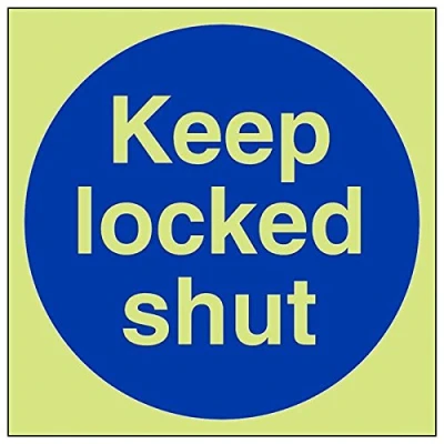 Helps to fulfil obligations to show vital escape route information about fire doors for all employees and visitors as per Health and Safety (Safety Signs & Signals) Regulations 1996 Conforms to EN ISO 7010:2012 Square Orientation. Sign reads "Keep Locked Shut" Highly durable Glow In The Dark 1mm plastic material and screen printed message will stand the test of time Sign measures 200 x 200mm.