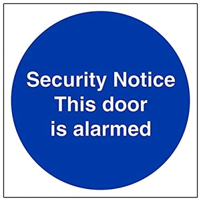 Helps to fulfil obligations to show vital escape route information about fire doors for all employees and visitors as per Health and Safety (Safety Signs & Signals) Regulations 1996 Conforms to EN ISO 7010:2012 Square Orientation. Sign reads "Security Notice. This Door Is Alarmed" Highly durable Self Adhesive Vinyl material and screen printed message will stand the test of time Sign measures 200 x 200mm. Self Adhesive material will adhere securely to most surfaces