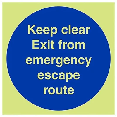 Helps to fulfil obligations to show vital escape route information about fire doors for all employees and visitors as per Health and Safety (Safety Signs & Signals) Regulations 1996 Conforms to EN ISO 7010:2012 Square Orientation. Sign reads "Keep Clear. Exit From Emergency Escape Route" Highly durable Glow In The Dark 1mm plastic material and screen printed message will stand the test of time Sign measures 150 x 150mm.