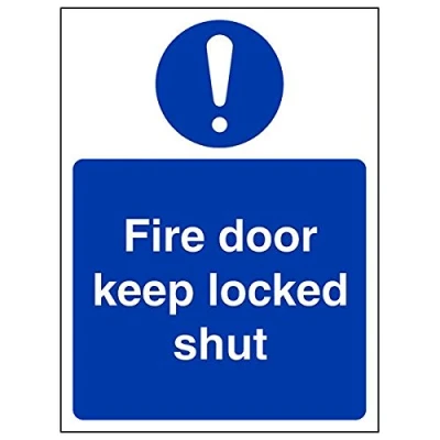 Helps to fulfil obligations to show vital escape route information about fire doors for all employees and visitors as per Health and Safety (Safety Signs & Signals) Regulations 1996 Conforms to EN ISO 7010:2012 Portrait Orientation. Sign reads "Fire Door Keep Locked Shut" Highly durable 1mm plastic material and screen printed message will stand the test of time Sign measures 150 x 200mm.
