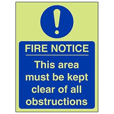Helps to fulfil obligations to show vital escape route information about fire doors for all employees and visitors as per Health and Safety (Safety Signs & Signals) Regulations 1996 Conforms to EN ISO 7010:2012 Portrait Orientation. Sign reads "Fire Notice. This Area Must Be Kept Clear Of All Obstructions" Highly durable Glow In The Dark 1mm plastic material and screen printed message will stand the test of time Sign measures 150 x 200mm.