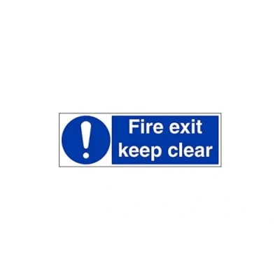 Helps to fulfil obligations to show vital escape route information about fire doors for all employees and visitors as per Health and Safety (Safety Signs & Signals) Regulations 1996 Conforms to EN ISO 7010:2012 Landscape Orientation. Sign reads "Fire Exit Keep Clear" Highly durable Self Adhesive Vinyl material and screen printed message will stand the test of time Sign measures 600 x 200mm. Self Adhesive material will adhere securely to most surfaces