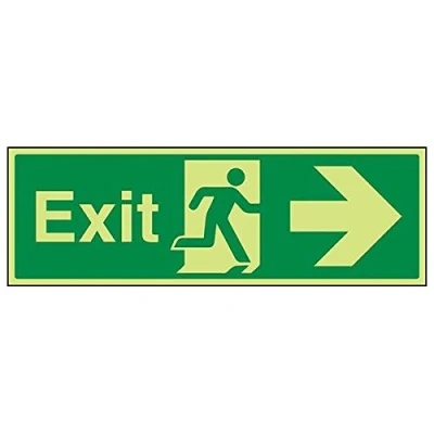 Helps to fulfil legal obligations to inform of the direction in which safety can be reached as per Health and Safety (Safety Signs & Signals) Regulations 1996 Conforms to EN ISO 7010:2012 by featuring a green background with a white pictogram or text positioned centrally Landscape Orientation. Sign reads "Exit" Highly durable Glow In The Dark 1mm plastic material and screen printed message will stand the test of time Sign measures 450 x 150mm.