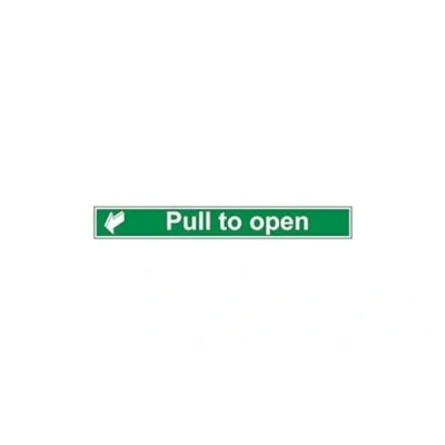 Helps to fulfil legal obligations to inform of the direction in which safety can be reached as per Health and Safety (Safety Signs & Signals) Regulations 1996 Conforms to EN ISO 7010:2012 by featuring a green background with a white pictogram or text positioned centrally Landscape Orientation. Sign reads "Pull To Open" Highly durable 1mm plastic material and screen printed message will stand the test of time Sign measures 600 x 75mm.