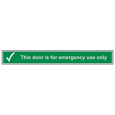 Helps to fulfil legal obligations to inform of the direction in which safety can be reached as per Health and Safety (Safety Signs & Signals) Regulations 1996 Conforms to EN ISO 7010:2012 by featuring a green background with a white pictogram or text positioned centrally Landscape Orientation. Sign reads "This Door Is For Emergency Use Only" Highly durable Self Adhesive Vinyl material and screen printed message will stand the test of time Sign measures 600 x 75mm. Self Adhesive material will adhere securely to most surfaces