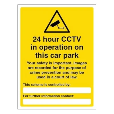 Clearly informs individuals that the car park is under 24-hour CCTV surveillance, ensuring GDPR compliance and transparency in data recording. Ideal for placement at all car park entrances and key areas, providing a constant, visual reminder that safety and security are prioritised. Acts as a strong deterrent against theft, vandalism, and other criminal activity, enhancing overall protection. Offers a sturdy and reliable construction, ensuring clear and long-lasting safety messaging in any environment. 2mm rigid plastic – Strong, durable, and weather-resistant for indoor and outdoor use.