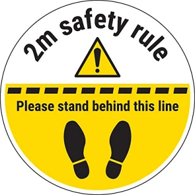 V Safety 2m Rule Stand Behind The Line 300mm x Self Adhesive Floor Sticker