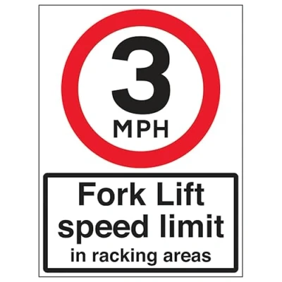 V Safety 3 MPH Fork Lift Speed Limit 450 x 600 mm 3mm Reflective Aluminium Composite Sign
