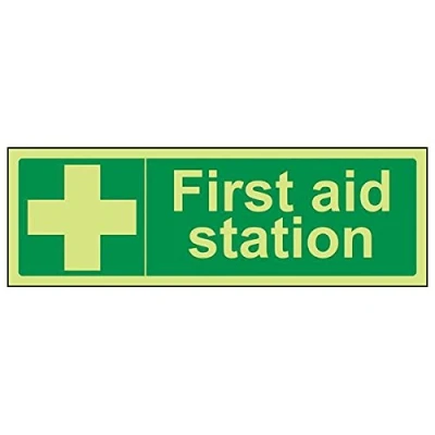 Helps to fulfil obligations to inform of where first aid supplies are kept as per First Aid At Work Regulations, as well as Health and Safety (Safety Signs & Signals) Regulations 1996 Conforms to EN ISO 7010:2012 Landscape Orientation. Sign reads "First Aid Station" Highly durable Glow In The Dark 1mm plastic material and screen printed message will stand the test of time Sign measures 300 x 100mm.
