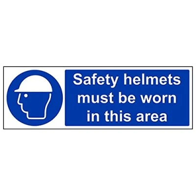Helps to fulfil legal obligations to remind staff and visitors to wear the appropriate PPE when required to ensure personal safety as per Health and Safety (Safety Signs & Signals) Regulations 1996 Conforms to EN ISO 7010:2012 - Mandatory Signs feature a round symbol with a blue background of at least 50% of the total sign area, with a white pictogram and text Landscape Orientation. Sign reads "Safety Helmets Must Be Worn In This Area" Highly durable Self Adhesive Vinyl material and screen printed message will stand the test of time Sign measures 450 x 150mm. Self Adhesive material will adhere securely to most surfaces