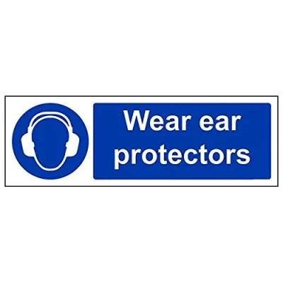 Helps to fulfil legal obligations to remind staff and visitors to wear the appropriate PPE when required to ensure personal safety as per Health and Safety (Safety Signs & Signals) Regulations 1996 Conforms to EN ISO 7010:2012 - Mandatory Signs feature a round symbol with a blue background of at least 50% of the total sign area, with a white pictogram and text Landscape Orientation. Sign reads "Wear Ear Protectors" Highly durable 1mm plastic material and screen printed message will stand the test of time Sign measures 300 x 100mm.