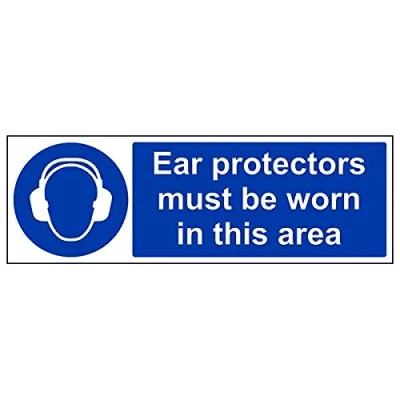Helps to fulfil legal obligations to remind staff and visitors to wear the appropriate PPE when required to ensure personal safety as per Health and Safety (Safety Signs & Signals) Regulations 1996 Conforms to EN ISO 7010:2012 - Mandatory Signs feature a round symbol with a blue background of at least 50% of the total sign area, with a white pictogram and text Landscape Orientation. Sign reads "Ear Protectors Must Be Worn In This Area" Highly durable 1mm plastic material and screen printed message will stand the test of time Sign measures 450 x 150mm.