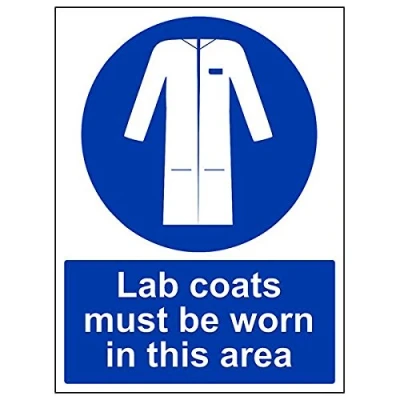 Helps to fulfil legal obligations to remind staff and visitors to wear the appropriate PPE when required to ensure personal safety as per Health and Safety (Safety Signs & Signals) Regulations 1996 Conforms to EN ISO 7010:2012 - Mandatory Signs feature a round symbol with a blue background of at least 50% of the total sign area, with a white pictogram and text Portrait Orientation. Sign reads "Lab Coats Must Be Worn In This Area" Highly durable Self Adhesive Vinyl material and screen printed message will stand the test of time Sign measures 300 x 400mm. Self Adhesive material will adhere securely to most surfaces