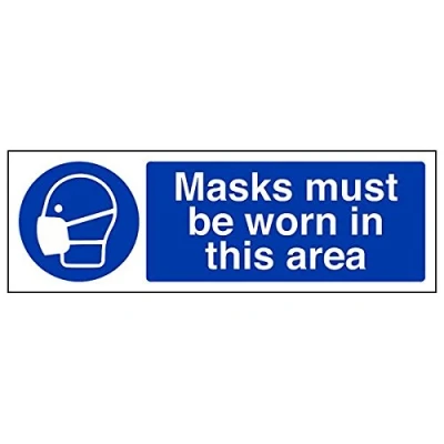 Helps to fulfil legal obligations to remind staff and visitors to wear the appropriate PPE when required to ensure personal safety as per Health and Safety (Safety Signs & Signals) Regulations 1996 Conforms to EN ISO 7010:2012 - Mandatory Signs feature a round symbol with a blue background of at least 50% of the total sign area, with a white pictogram and text Landscape Orientation. Sign reads "Masks Must Be Worn In This Area" Highly durable Self Adhesive Vinyl material and screen printed message will stand the test of time Sign measures 300 x 100mm. Self Adhesive material will adhere securely to most surfaces