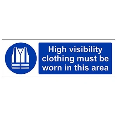 Helps to fulfil legal obligations to remind staff and visitors to wear the appropriate PPE when required to ensure personal safety as per Health and Safety (Safety Signs & Signals) Regulations 1996 Conforms to EN ISO 7010:2012 - Mandatory Signs feature a round symbol with a blue background of at least 50% of the total sign area, with a white pictogram and text Landscape Orientation. Sign reads "High Visibility Clothing Must Be Worn In This Area" Highly durable Self Adhesive Vinyl material and screen printed message will stand the test of time Sign measures 300 x 100mm. Self Adhesive material will adhere securely to most surfaces